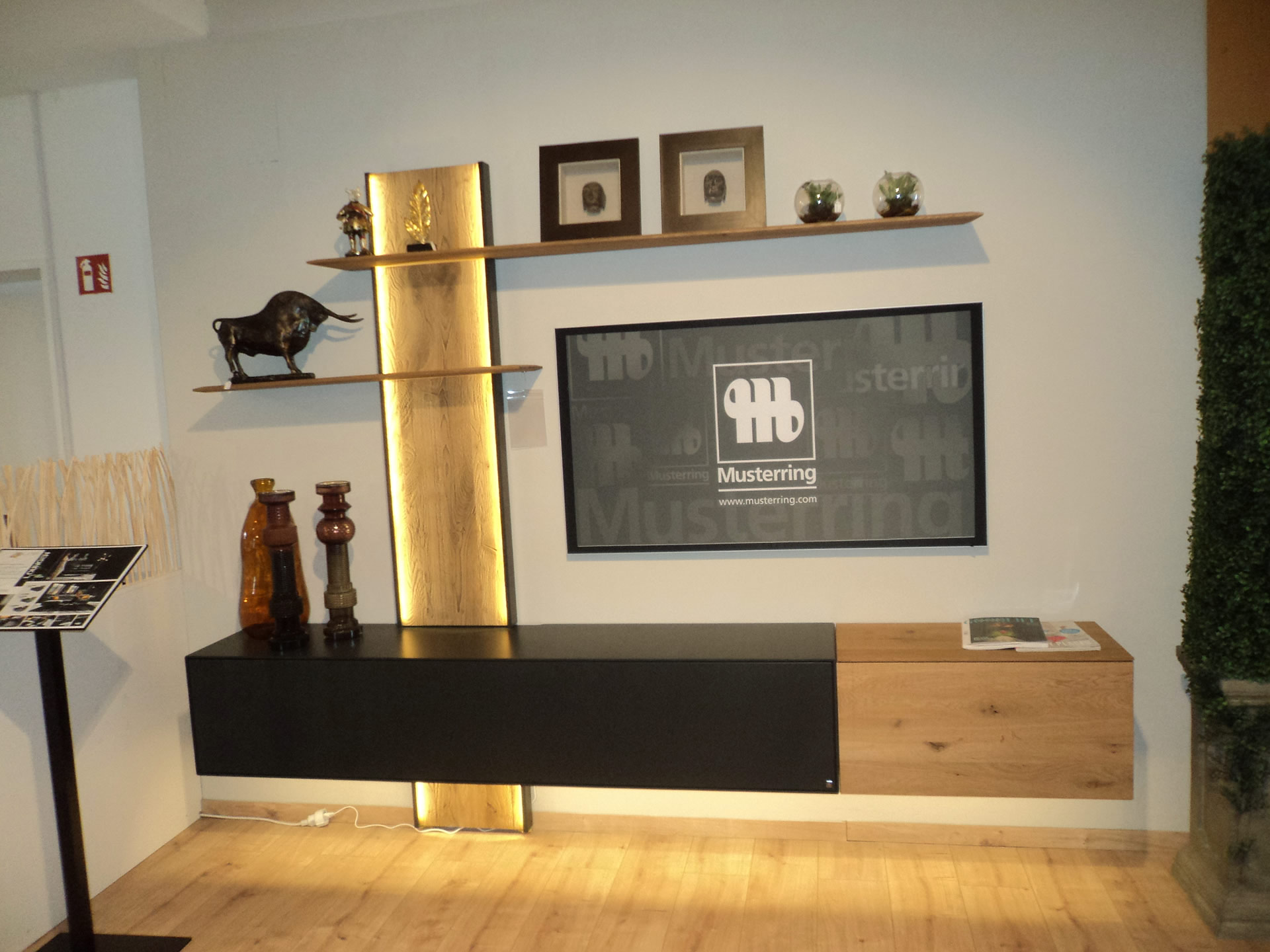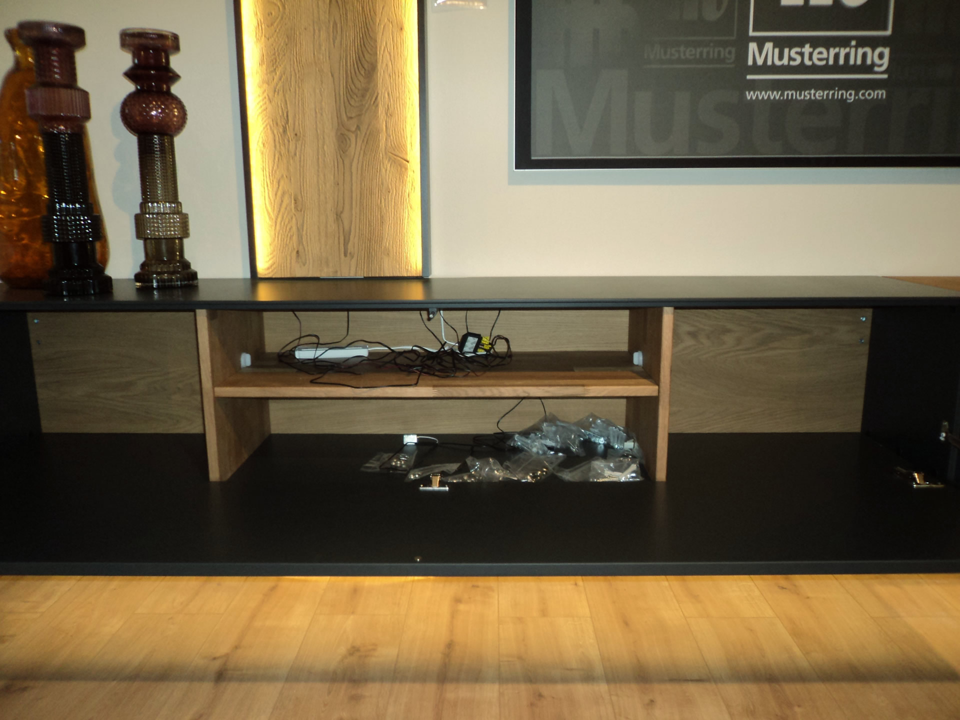 Wohnwand in Lack schwarzgrau/Wildeiche geölt